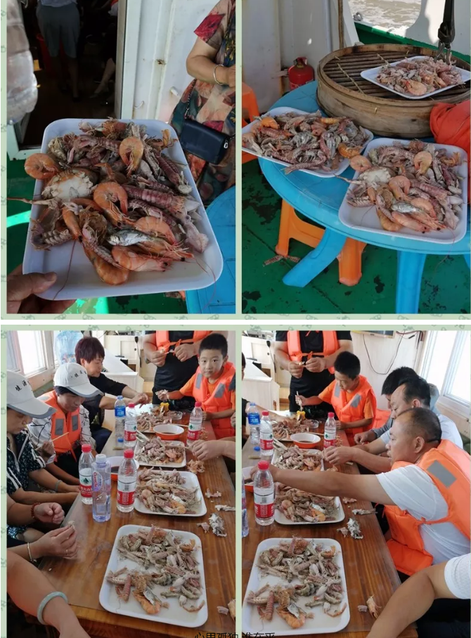 漁船在經驗豐富的船老大帶領下慢慢行駛,無邊的海域沒有邊界的延伸著。大家在船老大的指揮下體驗撒網、撈網。激動的時刻是漁網出水,大家迫不及待地想看看撈了些什么寶貝上岸。有梭子蟹、蝦,還有不知名的海洋生物,滿滿的一大筐的海洋寶貝。