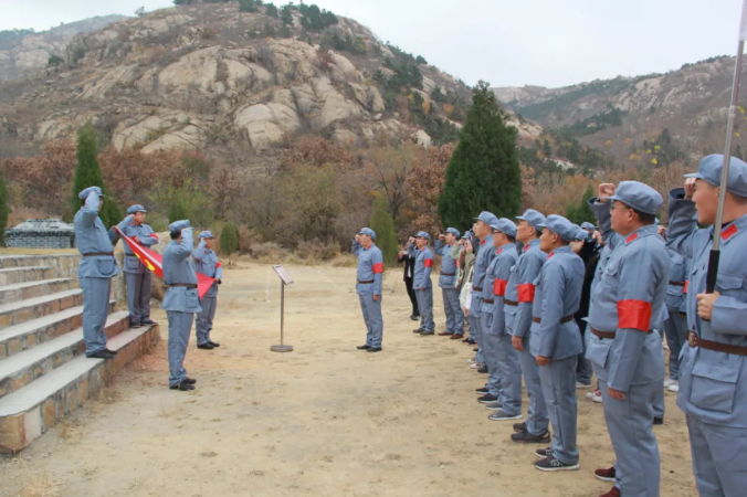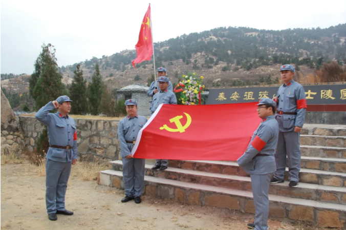 青山默默,松濤陣陣,在莊嚴肅穆的泰安徂徠山烈士陵園前,向革命英烈敬獻花籃,緬懷革命先烈。面對鮮紅的黨旗,全體共產黨員重溫入黨誓詞,做出莊嚴宣誓。