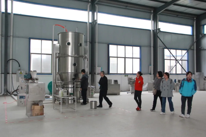 山東農業大學劉建柱教授和藥學系老師們參觀了公司的科技研發中心、生產車間等,邢主任對廠區內的環境設施和運作流程、工藝流程等進行了講解。