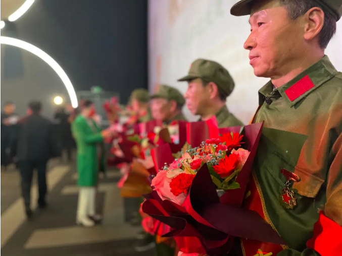 鮮花贈英雄,初心永不忘,觀影代表向現場抗美援朝老兵們送上綬帶和鮮花,衷心祝愿老戰士身體健康,萬事如意。