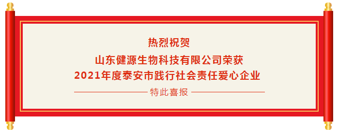 熱烈祝賀山東健源生物科技有限公司榮獲2021年度泰安市踐行社會責(zé)任愛心企業(yè)