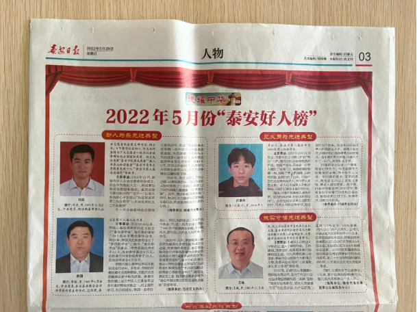 《泰安日報》發布2022年5月份“泰安好人榜”