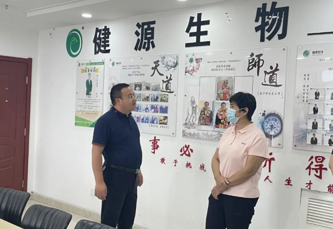 2022年7月12日,泰安市人大常委會副主任、九三學社市委會王淑玲主委,九三學社泰安市委會劉彥濤秘書長專程來到山東健源生物科技有限公司參觀指導工作,王誠董事長熱情接待并陪同參觀公司。