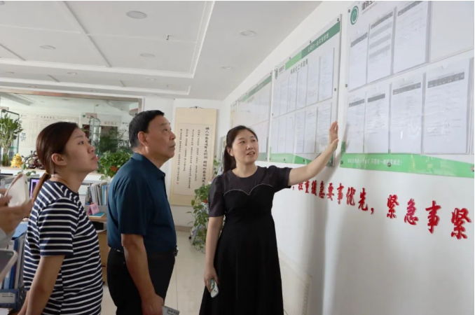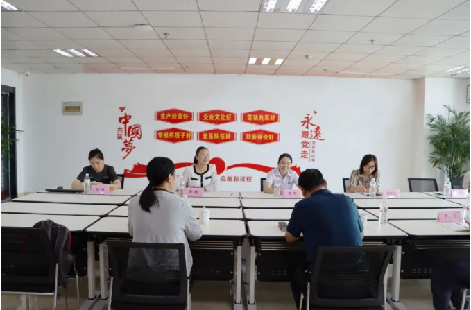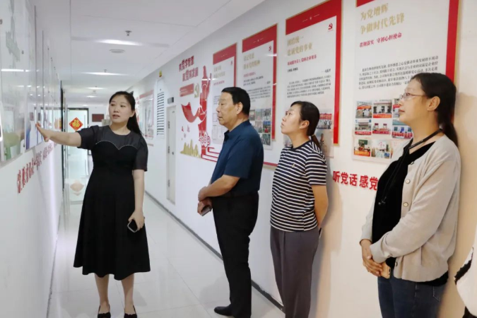 山東健源生物辦公室副主任鞏倩向領導們介紹黨建文化、健源生物企業文化.