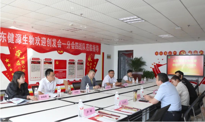 2022年9月23日,泰安市企業(yè)家創(chuàng)新發(fā)展協(xié)會(huì)一分隊(duì)四戰(zhàn)隊(duì)在總會(huì)常務(wù)副會(huì)長(zhǎng)何玉強(qiáng),一分會(huì)會(huì)長(zhǎng)周光榮、副會(huì)長(zhǎng)姜璐,一分會(huì)四戰(zhàn)隊(duì)隊(duì)長(zhǎng)尚安林、秘書(shū)長(zhǎng)胡佩佩帶領(lǐng)下,專(zhuān)程來(lái)到山東健源生物科技有限公司參觀指導(dǎo),山東健源生物董事長(zhǎng)王誠(chéng)等相關(guān)部門(mén)負(fù)責(zé)人熱情接待并陪同參觀。