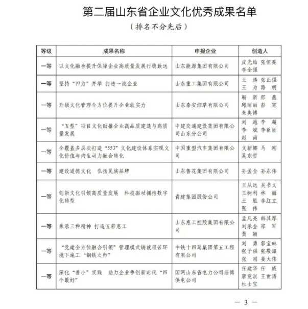 深入貫徹落實習近平新時代中國特色社會主義思想和黨的二十大精神,堅持中國特色社會主義文化發展道路,增強文化自信,積極踐行社會主義核心價值觀,不斷挖掘和培育我省企業文化建設典型,做好全國企業文化優秀成果發布活動的遴選推薦工作。山東省企業聯合會、山東省企業家協會聯合開展了第二屆山東省企業文化優秀成果發布活動。通過企業申報,各市企業聯合會、企業家協會和有關部門(單位)推薦,依據《山東省企業文化成果認定規范》團體標準,按照公開、公正的原則,堅持嚴謹、科學、規范的程序,經初審、發布會現場發布、專家評審,有79項成果被確定為山東省企業文化優秀成果,山東健源生物科技有限公司《“誠”辦良心企業,企業文化推動科技創新》企業文化成果榮獲第二屆山東省企業文化優秀成果二等獎。