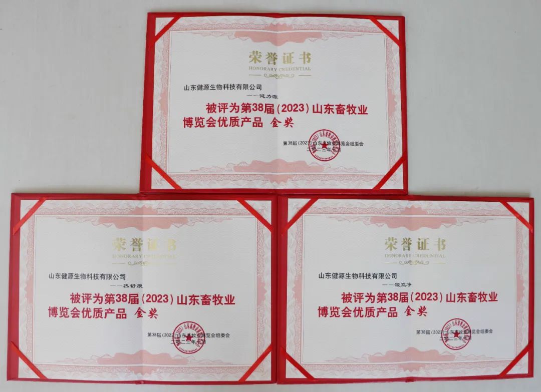 山東健源生物產品“健力源”獲得第38屆山東畜牧業博覽會優質產品金獎