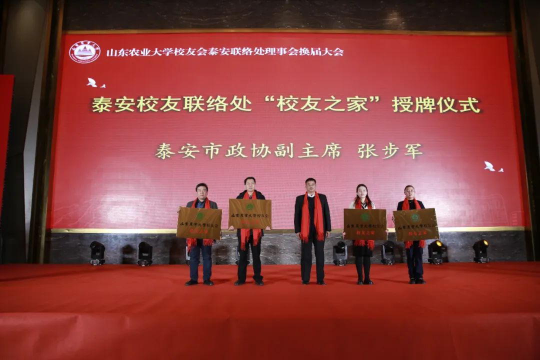 泰安市政協副主席張步軍為山東農業大學校友會設在泰安地區的“校友之家”授牌。山東健源生物科技有限公司被授予山東農業大學校友會“校友之家”單位。