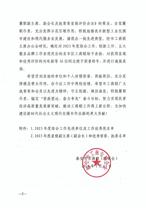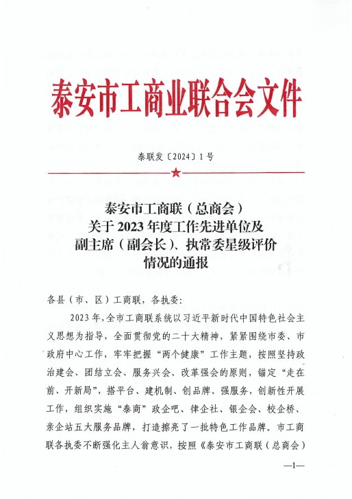 董事長(zhǎng)王誠(chéng)榮獲泰安市工商聯(lián)“優(yōu)秀常委”榮譽(yù)稱號(hào)