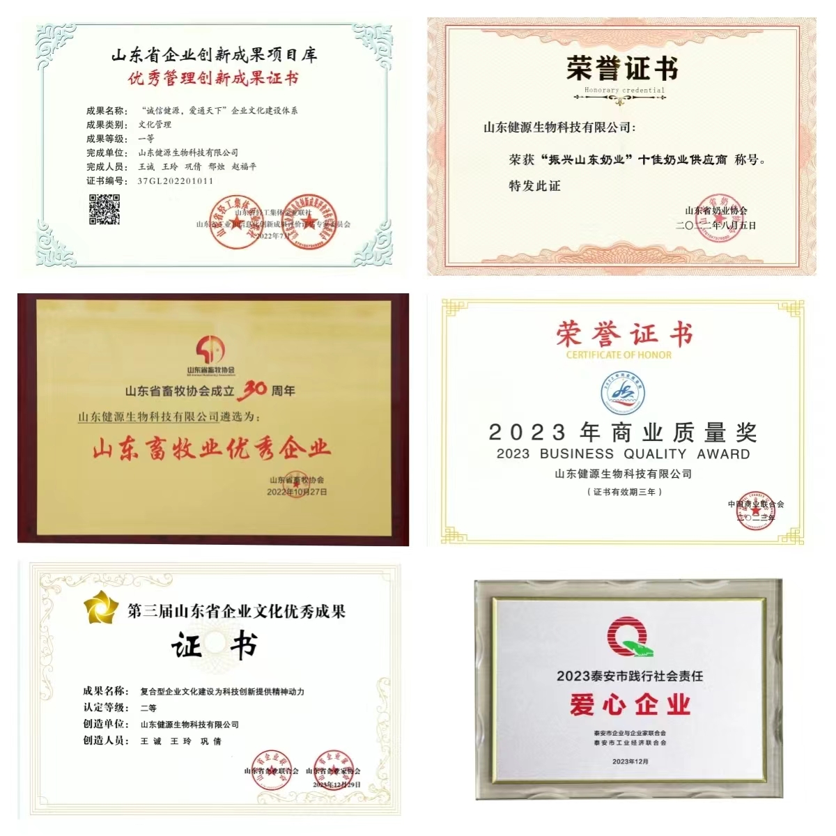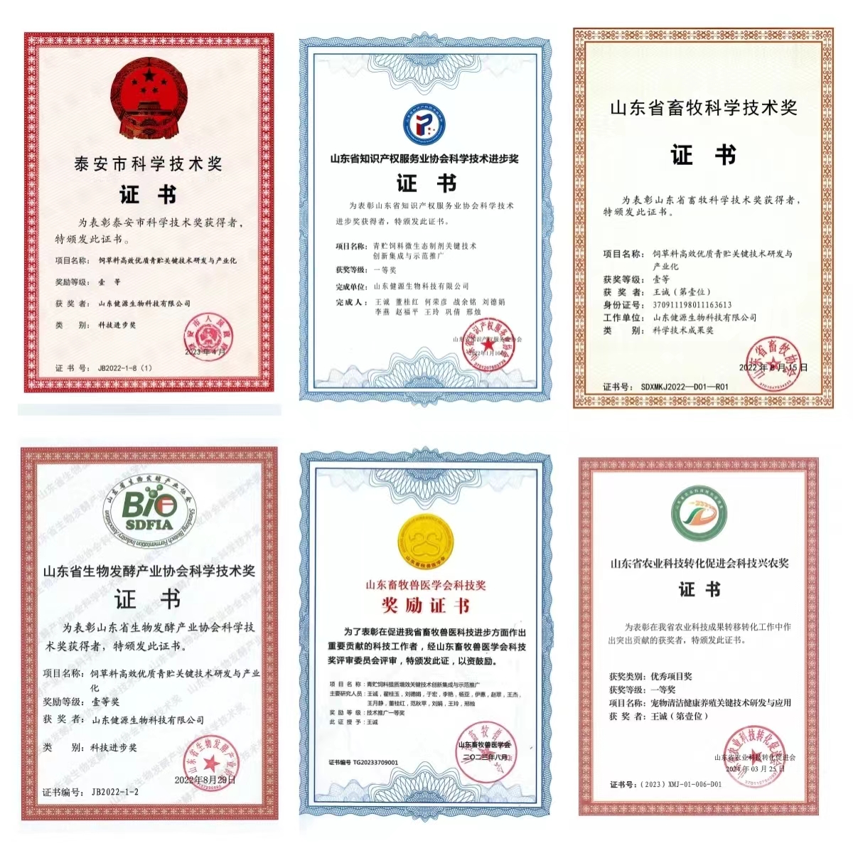 山東健源生物科技有限公司系國家高新技術企業、國家科技型中小企業、山東省瞪羚企業、山東省專精特新中小企業、山東省一企一技術研發中心、泰安市農業產業化重點龍頭企業。公司深耕動物微生態行業十年,主攻動物類生物大健康產品,研發出三十多種高活性生物制劑產品,致力于以高科技生物技術保障動物健康,現已獲得國家知識產權局頒發的各類專利證書100余項,其中包括32項國家發明專利、3項國際發明專利,60余項實用新型專利、14項軟件著作權,注冊商標100多個,還有正在申請中的國家發明專利20余項,累計榮獲市級科技獎項7項,省級科技獎項30余項,部級科技獎項12項。