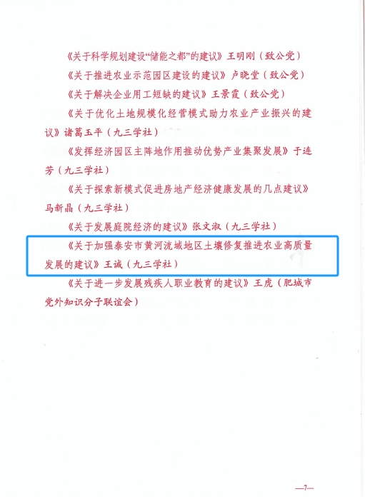 發布時間:[2024-7-9 17:52:5] 瀏覽量:3332次會上公布了《關于2023年度黨外人士建言獻策工作先進典型的通報》,王誠董事長被評為2023年度黨外人士建言獻策“建言先鋒”,撰寫的《關于加強泰安市黃河流域地區土壤修復推進農業高質量發展的建議》被評為2023年度黨外人士建言獻策“金點子”。