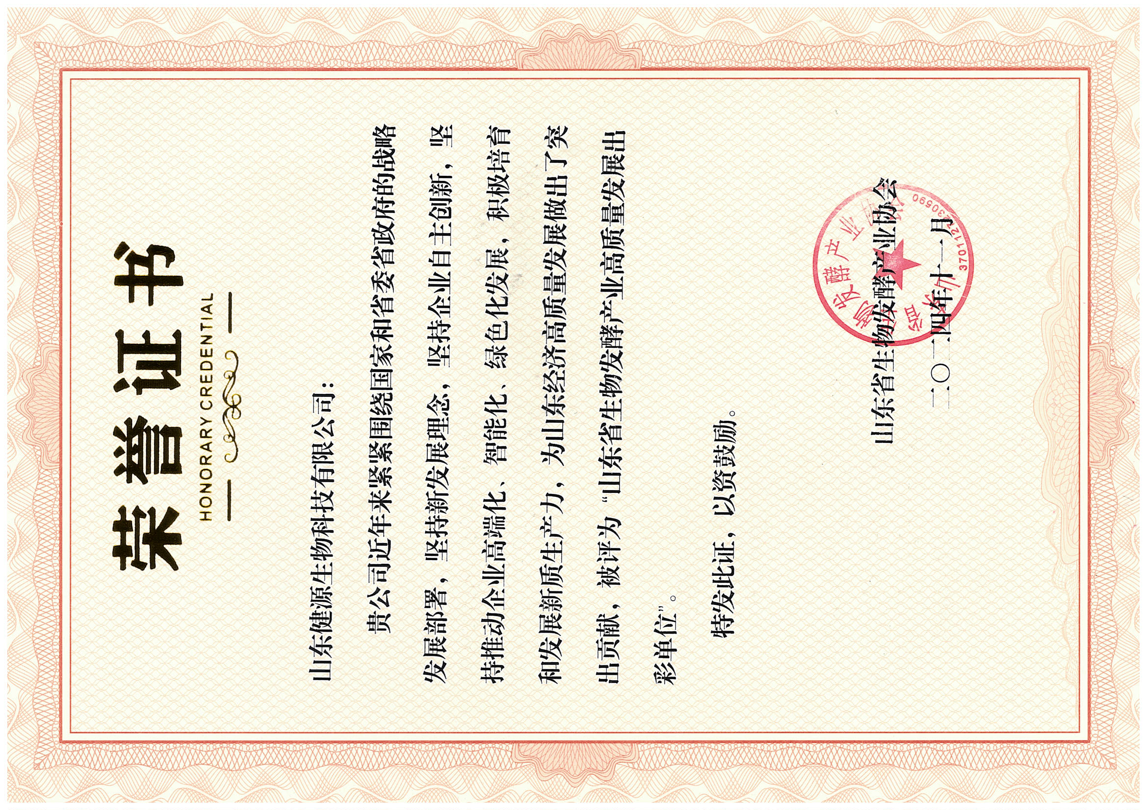 健源生物榮獲“山東省生物發(fā)酵產(chǎn)業(yè)高質(zhì)量發(fā)展出彩單位”稱號(hào)
