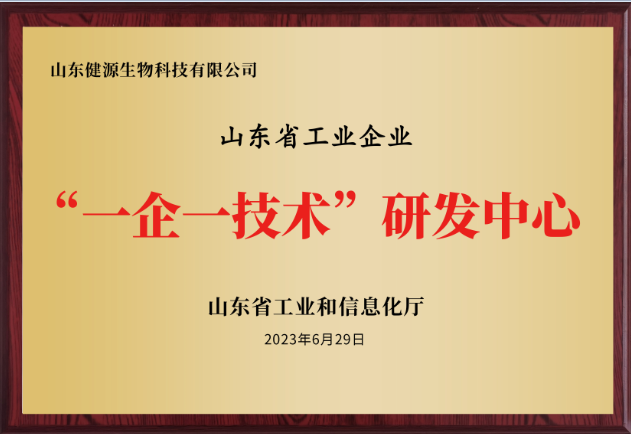 2023-7-6 山東健源生物被認定為2023年山東省“一企一技術”研發中心