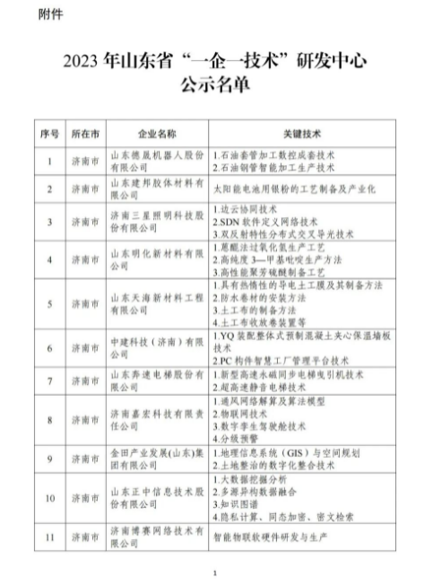 附《2023年山東省“一企一技術”研發中心公示名單》