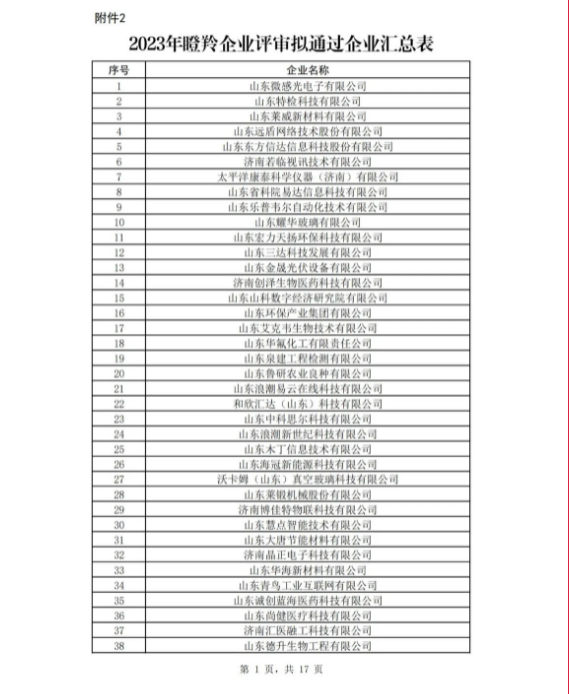 2023年7月10日,山東省工信廳公示了2023年度山東省瞪羚企業(yè)名單,山東健源生物科技有限公司被認(rèn)定為2023年度山東省瞪羚企業(yè)。