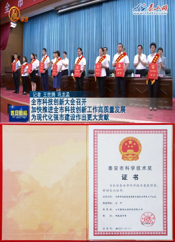 健源生物參加全市科技創(chuàng)新大會(huì)并榮獲泰安市科學(xué)技術(shù)進(jìn)步獎(jiǎng)一等獎(jiǎng)