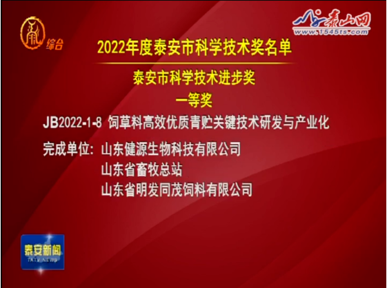 《飼草料高效優(yōu)質(zhì)青貯關(guān)鍵技術(shù)研發(fā)與產(chǎn)業(yè)化》項(xiàng)目榮獲泰安市科學(xué)技術(shù)進(jìn)步獎(jiǎng)一等獎(jiǎng)