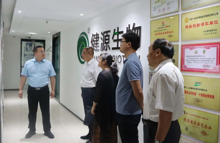 山東健源生物董事長王誠首先對老師們的到來表示熱烈歡迎,并向老師們詳細介紹了公司企業文化、科技創新、產品研發和發展規劃等,觀看了山東健源生物企業宣傳片,并表示公司始終以科技成果轉化推動企業高質量發展,重視研發創新工作和研發成果轉化,希望通過黨建共建,深化校企合作,實現學校、企業、社會、學生多方共贏。