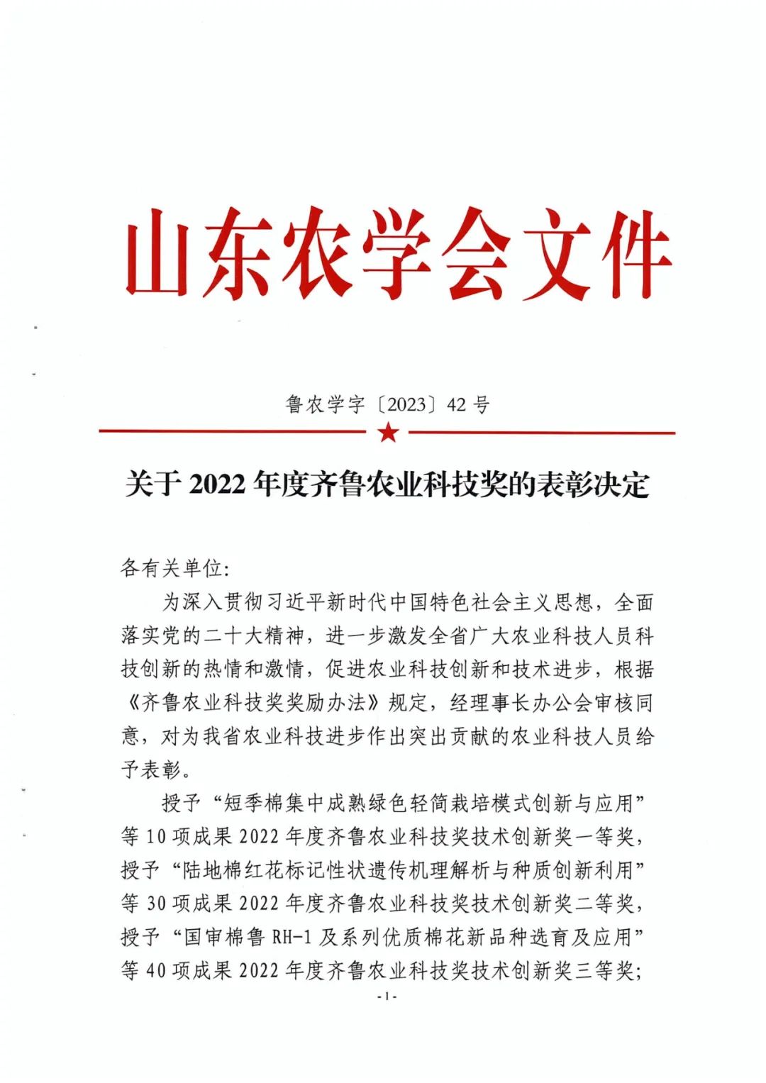榮獲2022年度齊魯農(nóng)業(yè)科技獎(jiǎng)