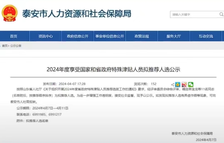 擬享受山東省政府特殊津貼